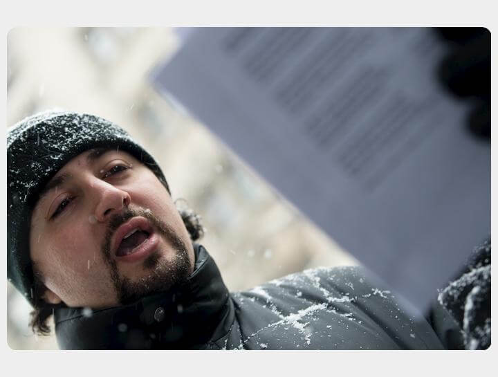 As snow fell on the New York area Saturday afternoon, 40 human rights advocates gathered on Manhattan’s upscale Madison Avenue in front of the Leviev Diamond store and sang parody holiday carols protesting diamond magnate Lev Leviev’s construction of Israeli settlements. Many holiday shoppers, bundled against the cold, paused to listen to the carolers and appeared surprised but pleased by their human rights message.