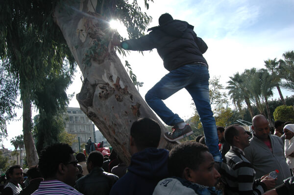 While in the UN office, Tu’umzght hatched a plan to improve the leverage of African asylum seekers. He told the UN representatives, “please, can you go with us down [outside], with our people and will give the letter in front of our people,”—the thousands who were chanting “freedom” and “no prison” on the street. It worked. The UN officials walked outside and an impromptu ceremony of unofficial international commitment was solidified. In front of thousands of protesting asylum seekers, the UN leaders said they would give an official response in the coming days.