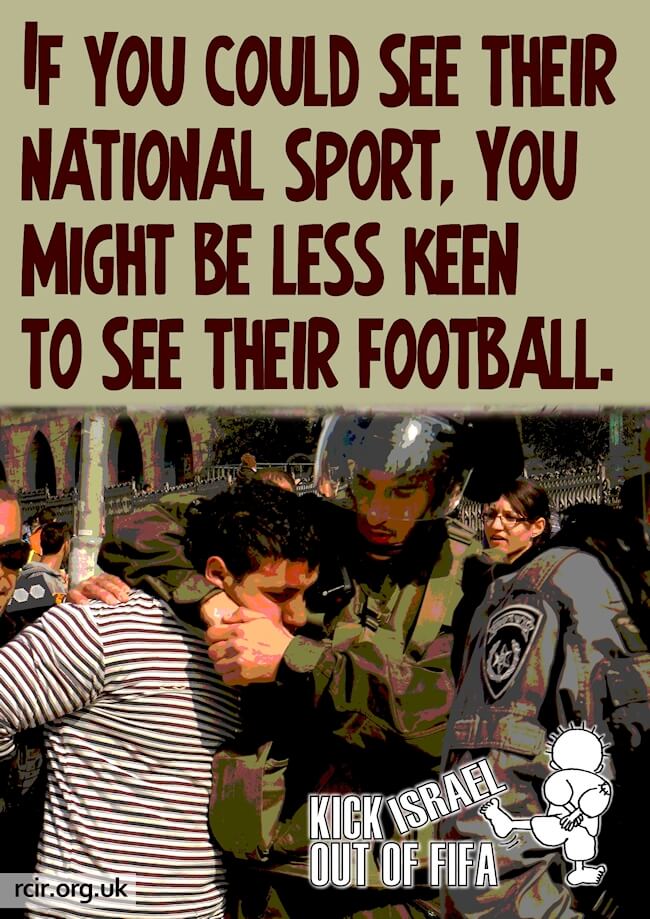 An international campaign of sports activists, Red Card Israeli Racism (IRCR), believes” we can bring pressure on Israel to drop its racism and apartheid policies and laws.” Their objectives include:
