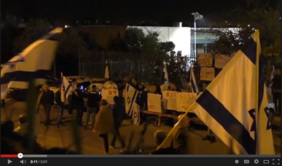 Tensions were extremely high as an Israeli soldier and a settler had been stabbed to death that day in separate incidents. At the demonstration, at least one person was physically assaulted. “Somebody hit me over the head with a flag pole. They called us Nazis and said ‘May you burn in the gas chambers,’” Zafira Stern said. Three protesters were arrested after they cut the electricity.