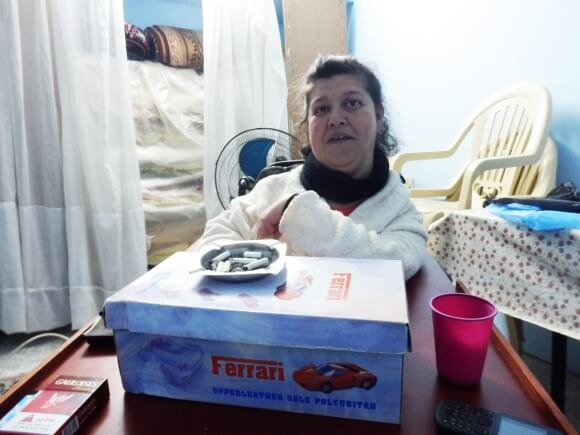 Echlas was born in the camp in 1972 with muscular dystrophy and has been in a wheelchair all her life. For the last twenty-three years she has relied on international volunteers to provide her with round the clock care. These volunteers were organised at first through friends, and now Facebook. She tells me that many of these people had heard about Palestine, but did not know the story of the Palestinians’ exile, or have any idea about what life was like for Palestinians now. “I had one girl who was living with me, who realised only after one week of being here that this is a refugee camp! She said to me, ‘but how can it be, there are no tents?’”