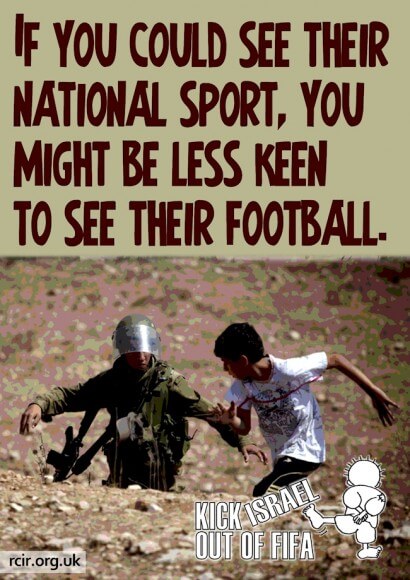 The Press Release copied below, gives the text of the Open Letter in Saturday’s Guardian calling for FIFA to suspend the Israeli Football Association (IFA) at the FIFA annual congress in Zurich on 28-29 May 2015. Signatories are former UN Special Rapporteur Richard Falk, Palestinian refugees’ champion Salman Abu Sita and a number of progressive writers, film makers, politicians and activists including Breyten Breytenbach, Noam Chomsky and Ronnie Kasrils.