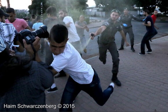 Police arrested 15 Palestinians, thrashing many, including Basel Ghattas, who is a member of the Israeli Knesset. “We are disappointed in the police, but it is not the first time,” Ghattas said, referencing another member of his Joint Arab List party, Jamal Zahalka who suffered a broken bone during a protest in Israel’s Negev desert last year.