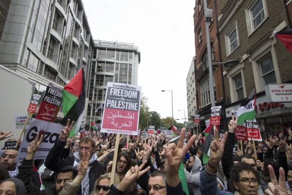 To follow Palestinians’ lead, Sarah Colborne, director of Palestine Solidarity Campaign (PSC), strongly urged demonstrators at Saturday’s London protest to wave only the Palestinian flag. “We are here united for Palestine and it is this flag that connects us. It is a symbol of Palestinian struggle, justice, peace and freedom.”