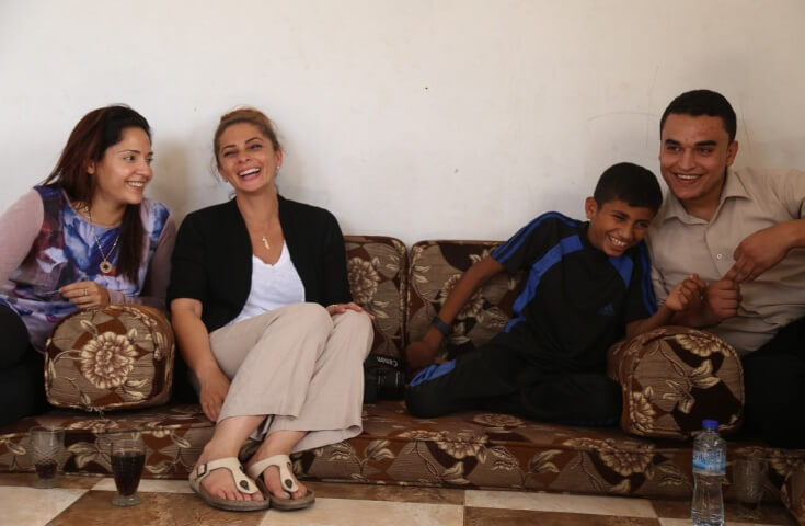 Dr. Bahar Al Hashemi and colleagues/social workers from Gaza Community Mental Health Programme (GCMHP) visit Ibrahim’s home in Rafah (photo: PCRF)