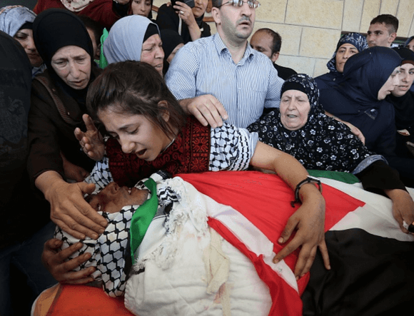 The Palestinian leadership said in a report published today a number of those killed by Israeli forces were “extrajudicial killings.” Of those cases the youngest Palestinian killed was Ahmad Sharakeh, 14, from Jalazon refugee camp who “was walking with friends in a mountainous region near the camp, when an Israeli soldier, hiding in a tree, fatally fired a bullet into the back of his head. Ahmad presented no imminent threat or danger to anyone,” according to the report.