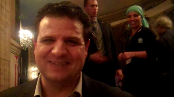 By the end of the day I felt much different. There was a distinct minority of Palestinian voices at the conference, but they were the most powerful voices. They were not token, they had a platform; they came on strong in the afternoon, and audiences listened to them rapt. Ayman Odeh the member of the Israeli Knesset who is head of the Joint List was saluted like a rock star at the end of his speech calling for a shared future of equal rights. (Watch the crowd leap to its feet at 4:50 below)