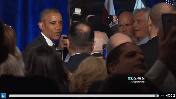 When he came in, there were about 300 people there… the response was quite tepid. Ambassador Dermer, for instance, got much warmer applause than Obama did. But when Obama left, after he made this speech, these same people who had barely gotten up to clap– it’s a scene I’ve never seen before. They were all in suits and they were shouting out, Thank you, thank you, thank you. It was really heartfelt, it was an outpouring of noise toward him, which I don’t think is going to change much in the perception that a lot of Israelis and Jews unfortunately have of Obama but for anybody who was there this whole claim that he somehow is working against Israeli interests or that he doesn’t have warm feelings for Jews, it just sounded so ridiculous. If you were there, you would know how ridiculous and how malicious it is. And how probably politically motivated.