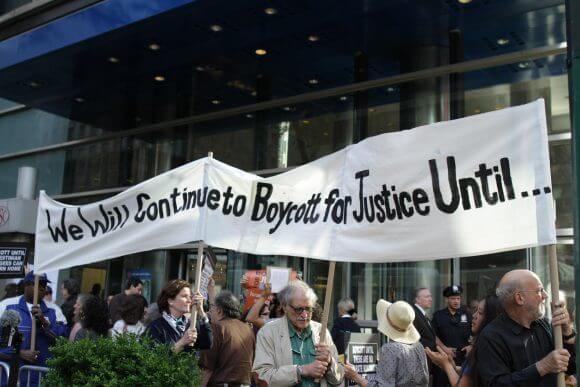 “We have to work harder, we have to be more vigilant, and we have to do more BDS activities than ever,” Hirschmann said, undeterred. “The sentiment of New York people is that it’s only fair and just to be boycotting at this moment because of all the brutal human rights violations the Israelis have done to the Palestinians.”