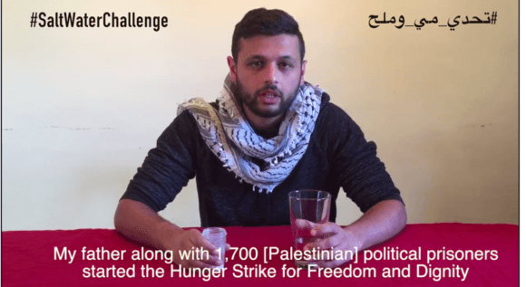 Aarab Marwan Barghouti, the son of jailed Palestinian official Marwan Barghouti who is leading a hunger strike of more than 1,500 Palestinians detained in Israeli prisons, gave a boost to prisoner solidarity campaigns by releasing a video of him drinking a bitter mixture of salt and water. The clip closes by asking others to participate in his “salt water challenge” in solidarity with the Palestinian hunger strikers.