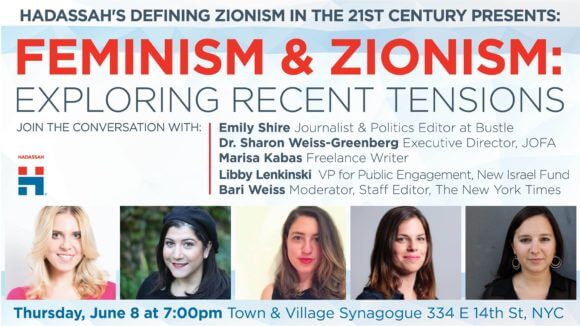 On Thursday, June 8, Hadassah picked up the conversation again as they hosted “Feminism and Zionism: Exploring Recent Tensions,” a panel discussion between Shire, Sharon Weiss-Greenberg (Executive Director of JOFA, the Jewish Orthodox Feminist Alliance), Marisa Kabas (a New York-based writer), and Libby Kenkinski (New Israel Fund), moderated by Bari Weiss, an editor at the New York Times. In typical Zionist fashion, Hadassah did not feature an anti-Zionist (Jew or non-Jew), and certainly no Palestinian speaker.