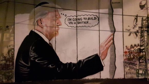 It was bound to happen. A guerrilla graffiti artist painted an image of Donald Trump on Israel’s separation wall inside of the West Bank city of Bethlehem in the early morning hours Monday, mocking the president’s repeated statements on his intention to build a wall along the U.S.-Mexico border.