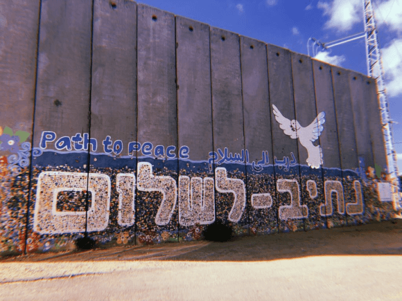 As for the Netiv HaAsara “border wall” peace project, that would seem to refer to a mosaic promoting peace that Israelis have made on a security wall in that community near the Gaza Strip. The wall was apparently built to protect people in Israel from the Strip.