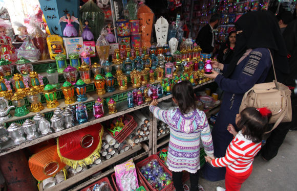 Palestinians shop for sweets at al-Zawya market during the holy month of Ramadan, in Gaza City on May 6, 2019. (Photo: Mahmoud Ajjour/APA Images)