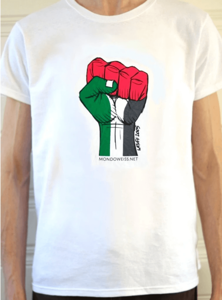 Show your support for the Palestinian cause with Carlos Latuff’s iconic image or a classic slogan. The shirts are wonderful 100% cotton grown, cut, sewn and printed in the Carolinas. You can track your shirt’s supply chain.