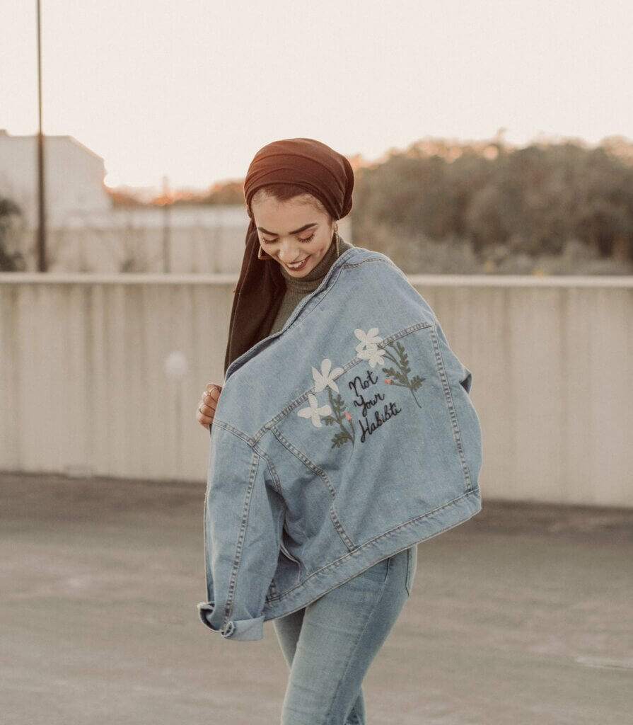 This light-washed denim jacket with front buttons is a classic design from Nöl Collective, first produced under the Baby Fist label, a unique Palestinian brand that was the brainchild of women’s rights advocate Yasmeen Mjalli who launched a clothing line in response to street harassment on women. From Nöl Collective: “We’ve just taken you back to the 90’s ?. Oversized sleeves and a cropped length provide a borrowed-from-the-boys look with a feminine touch. The relaxed, oversized fit makes it perfect to throw on over layers.”