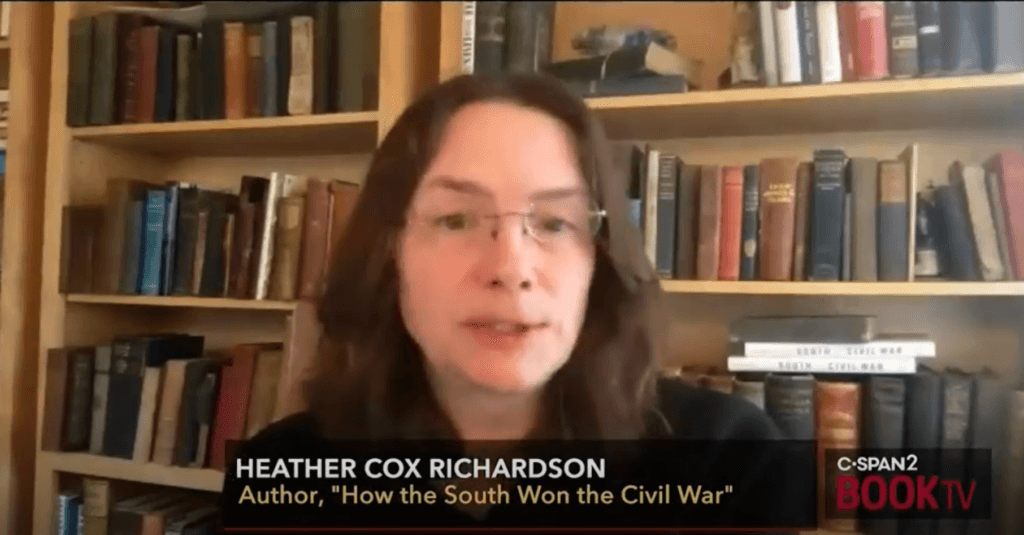 Heather Cox Richardson, a history prof at Boston College, is a star commenter these days (heralded by the NYT and my wife who listens to her podcast); and CSPAN aired an appearance Richardson made last May about her Civil War book in which she discussed conspiracy theories and the neocons who got us into the Iraq War. Long excerpt:
