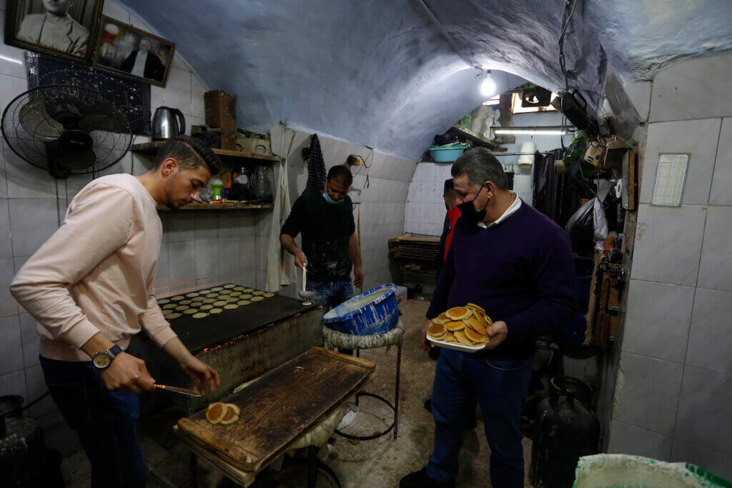 Palestinians shop at a market on the first day of the Muslim holy month of Ramadan in the West Bank city of Nablus on April 13, 2021. (Photo: Shadi Jarar’ah/APA Images)