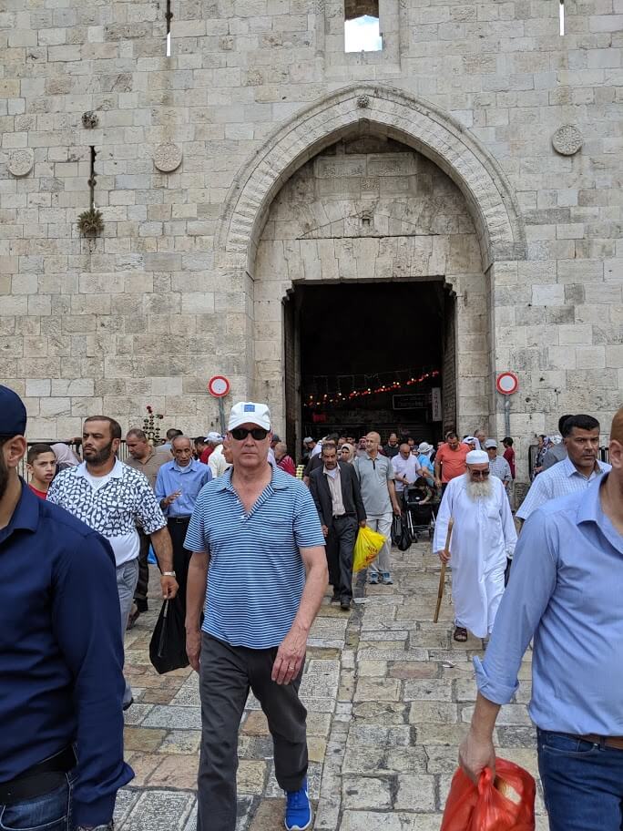From the very beginning. We flew in to Tel Aviv then. And first of all, the group we were with, Eyewitness Palestine briefed us a little bit that– some people on our trip may get hassled at the airport, whether their names looked different or there was some family history that was of concern. So that was the start of it. But I didn’t think much of that one way or the other till the next day when I was walking through the Old City of Jerusalem, and I wasn’t sure what the reason was—but I want to describe the number of soldiers– it was almost unnecessary. I thought, That is an exaggeration.