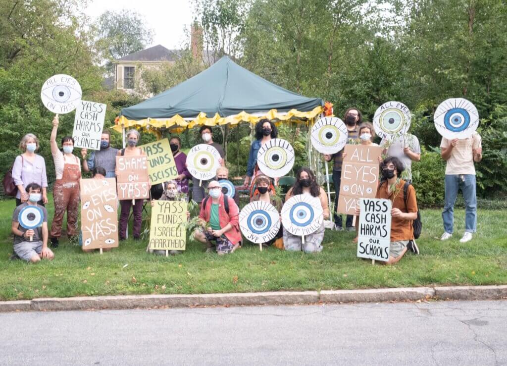 Philly activists have been targeting Yass, and trying to bring more attention to his influence, since May. This week Jewish Voice for Peace Philadelphia kicked off their “All Eyes on Yass” campaign, setting up a temporary dwelling to celebrate the Jewish holiday of Sukkot on Yass’ lawn.