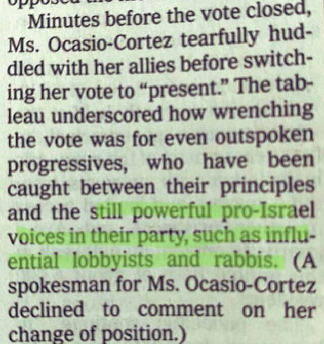 One thing is certain, getting AOC to discredit herself did not materially affect the outcome of this vote. But it was a strategic blow to the opposition to Israel’s well-documented murders, robberies, and corruption of America’s politics and media.