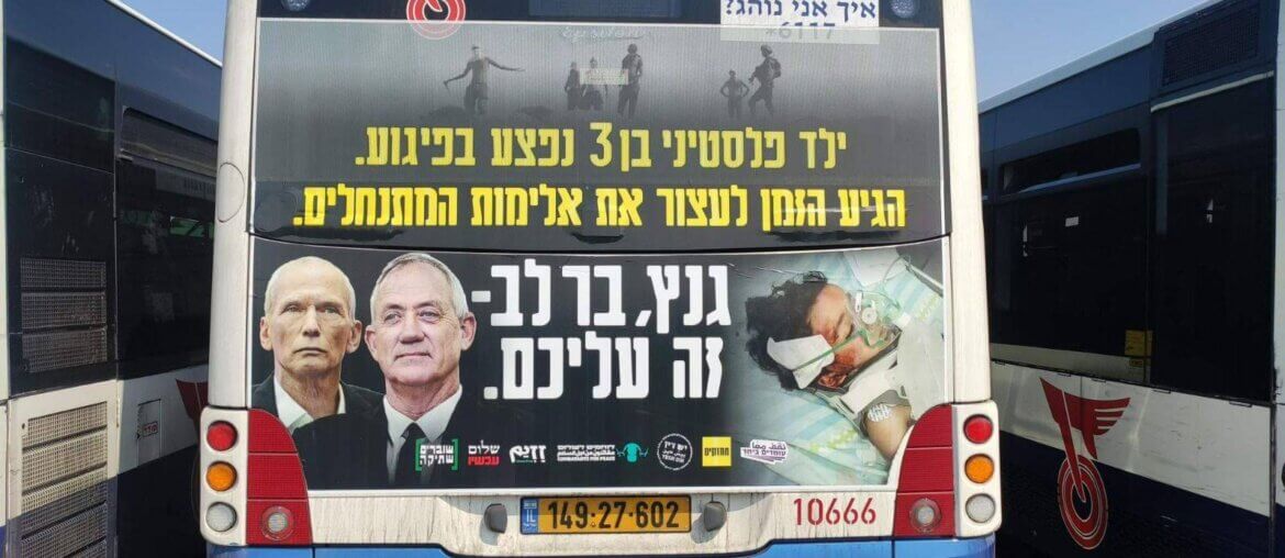 Following a pogrom in Southern Hebron that injured a 3-year-old Palestinian child, Israeli human rights organizations started an ad campaign calling on the Defense Minister and Internal Security Minister to end settler violence. Israeli bus companies removed the ad within a day after pressure from rightwing activists.
