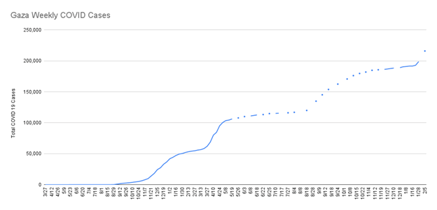 Gaza 192,209 (1/19 MOH), 192,860 (Coronavirus – Covid 19 surveillance system)