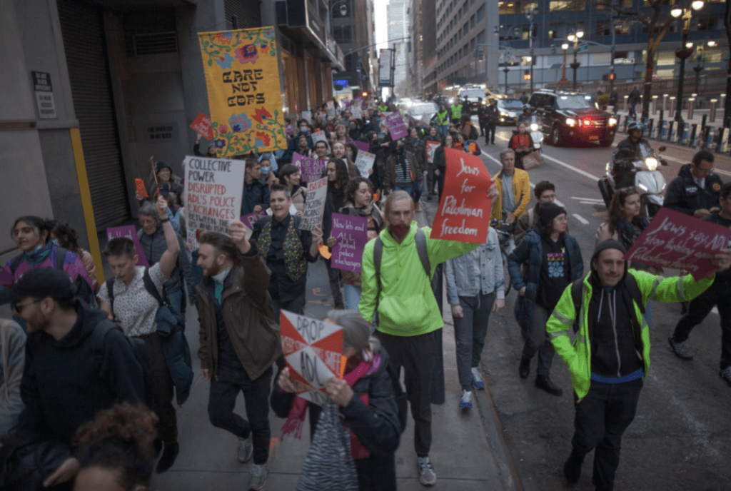 The next day hundreds protestors held an emergency march and rally in front of ADL’s Manhattan headquarters that featured speakers like Linda Sarsour (MPower Change), and Sumaya Awad (Adalah Justice Project). The group projected Efrati’s words across the building: “ADL chose the police; We choose the people.”
