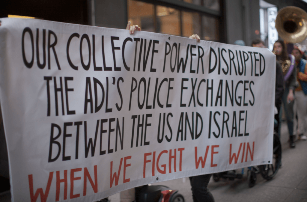 Since 2004 the ADL has accompanied hundreds of American law enforcement executives to Israel as part of their National Counter-Terrorism Seminar (NCTS). They receive training from the country’s National Police and military. Activists have targeted trips like this in a campaign called Deadly Exchange, that was organized by Jewish Voice for Peace (JVP). “Successful organizing is about seeing where we can slow, stall, or chip away at the big systems hurting us, our communities, and our neighbors,” reads the campaign’s website. “Although we know that ending these exchanges will not end police violence or deportations in the U.S., abolish Israel’s violations of Palestinian rights, or terminate all security collusion between the U.S. and Israel, we must start somewhere.”