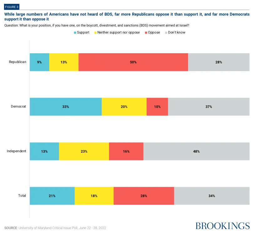In fact, in polling released by Brookings last week, Democrats have shown marked support for BDS as a means to curb Israel’s human rights violations– by 33 to 10 percent (with many still not familiar with it). So Nadler is fighting a tide.