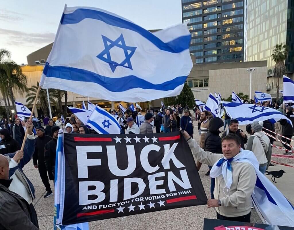 Joe Biden actually took on Benjamin Netanyahu, and made Netanyahu back down on his judicial revolution. Biden did it because he had the major Jewish groups on his side and against Israel for once: the American Jewish Committee, the Conference of Presidents, the ADL, the Federations all told Netanyahu the right-wing changes are a bridge too far for “shared values,” and Biden had the temerity to say, “I hope he walks away from it.”