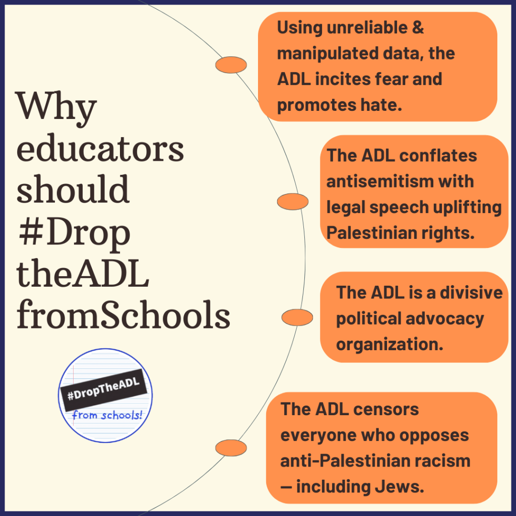 - Cut all ties with the ADL, including use or endorsement of their curricular materials, participation in their programs, and engagement in their professional development offerings;