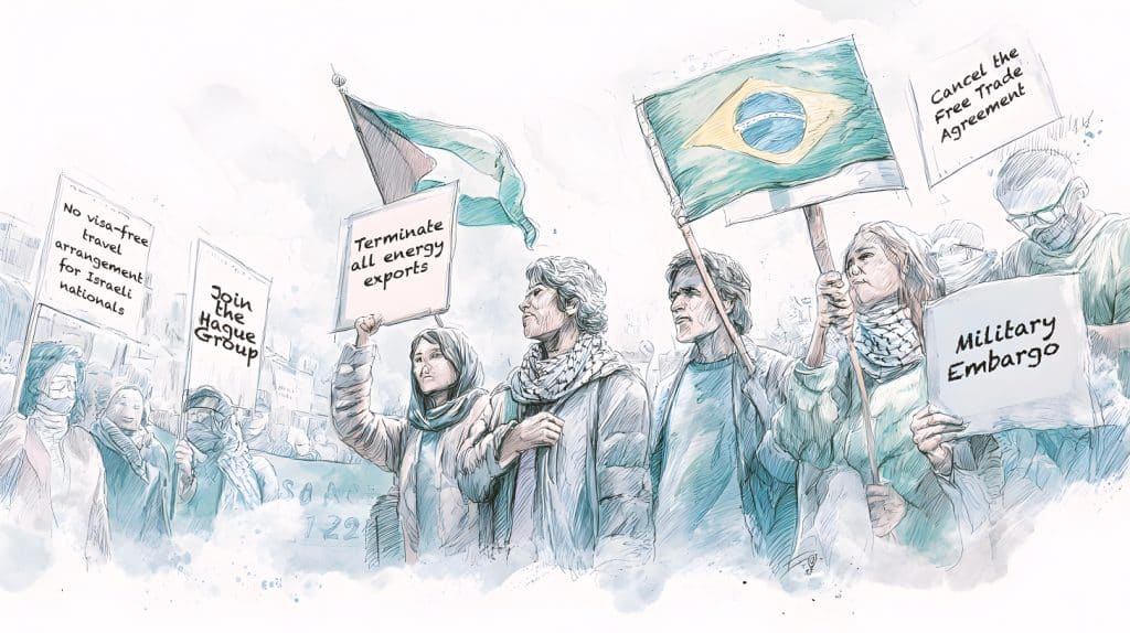 While – since the genocide began – Brazilian President Lula has used strong diplomatic language, including recalling Brazil’s ambassador to Israel and downgrading Israel’s diplomatic status, and while the Ministry of Foreign Affairs has announced that some measures against Israel are under analysis, policy shifts so far remain limited. The Mercosur–Israel FTA remains operative, and government agencies have not reversed major military or trade commitments. Meanwhile, states and municipalities continue to buy Israeli equipment. And even though the major victory of a halt to the direct delivery of oil to Israel in 2025, a formal embargo has not been put in place and indirect shipment continues.