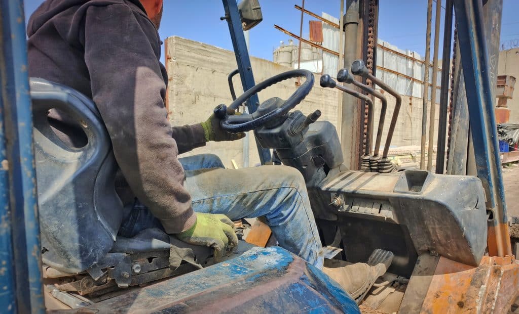 In Bir Nabala, Muhammad and his co-workers prepare to resume work crushing metallic junk into cubes. “I used to work in a warehouse in Jerusalem. I worked there for six years,” he says. “I used to make up to 400 NIS [$133] per day.” A few days after October 7, the manager came and told them that they couldn’t keep their Palestinian laborers anymore, he adds, since the Israeli authorities started to impose fines on any business that violated the ban on hiring West Bank workers. “That was my last day of work there,” he recalls.