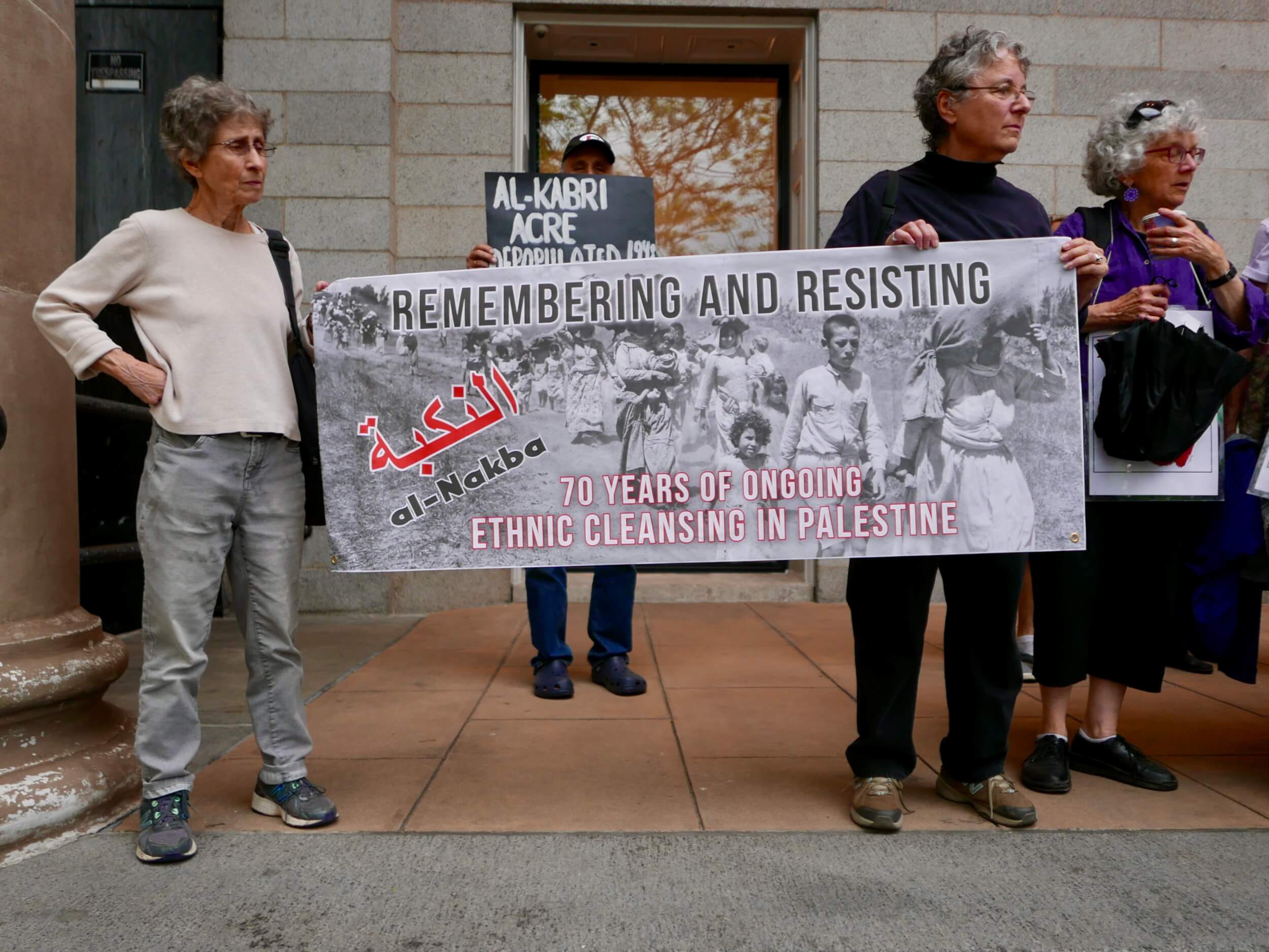More than 300 Palestinians and their allies gathered on Tuesday, May 15 in Boston to mark the 70th anniversary of the Nakba, the catastrophic Israeli ethnic cleansing of Palestine, and to protest Israel’s massacre of Gazans participating in the Great March of Return.