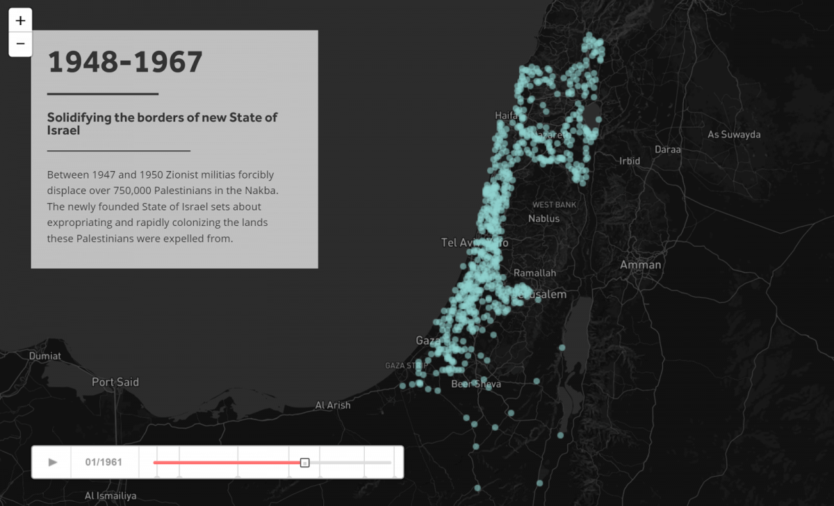 A new infographic from Visualizing Palestine using data from the Israeli Central Bureau of Statistics shows how European Zionists began establishing population centers in Palestine in the 1870s, with British imperial support and how from 1967 to present, Israel has continuously engaged with impunity in the construction and expansion of settlements defined as illegal under International Law.