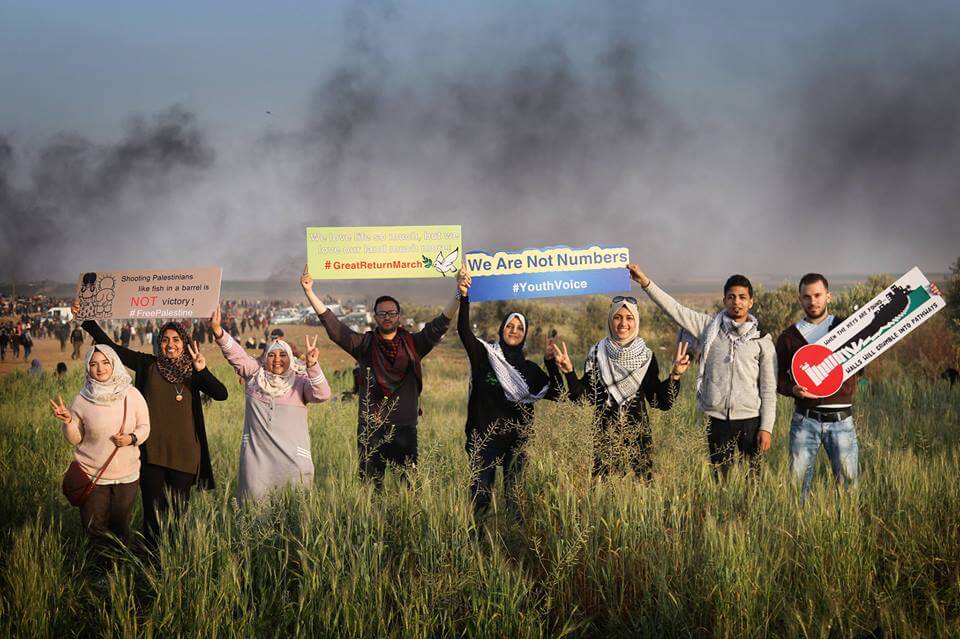 Gaza photographer Mohammed Asad has just turned away from the fence protest Friday when he felt a sting on his cheek and his camera strap jerk and saw Mohammed al Jahjuh, 16, writhing on the ground Al Jahjuh had been killed by an Israeli sniper. Asad narrowly escaped death, but his $2500 Canon camera was destroyed. He will borrow equipment, he vowed, to return to the protests. Israelis don’t understand “the Palestinian’s stubborn brain.”