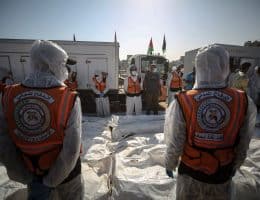 The Gaza Ministry of Health published photos of the mutilated bodies of Palestinian prisoners. Most of them showed clear signs of torture — hands and feet bound, blindfolded, bodies showing marks of tank tracks, burns, fractures, and deep wounds.